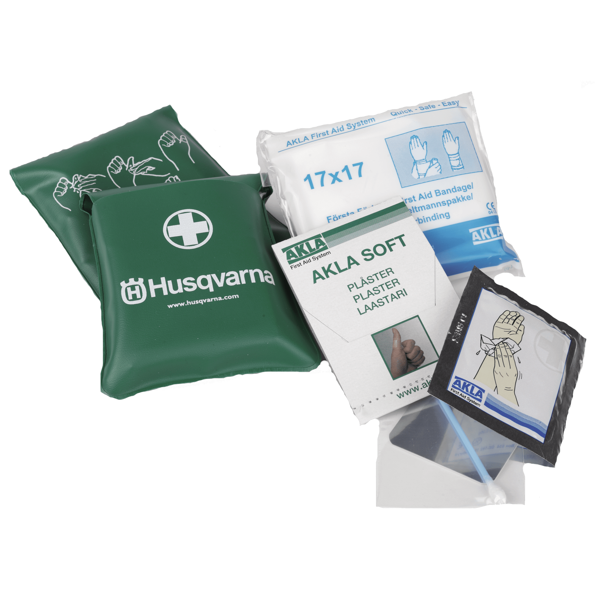 Innehåller: Första förband, 9 plåster i olika storlekar, 2 sårtvättare, 1 spegel samt 1 tops.
