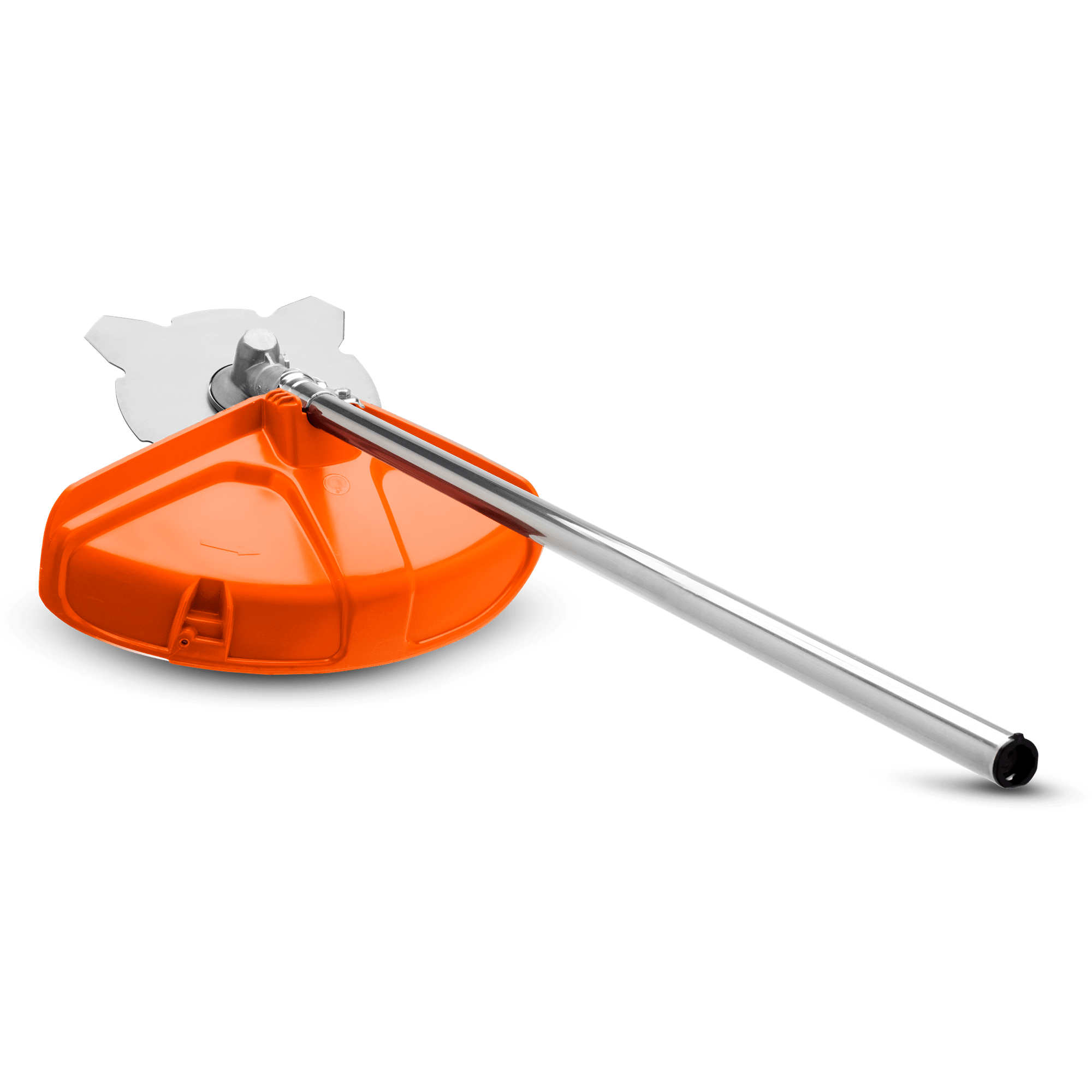 Utrustad med kombiskydd och gräsklinga Multi 255-4. Levereras komplett med J-handtag och sele.