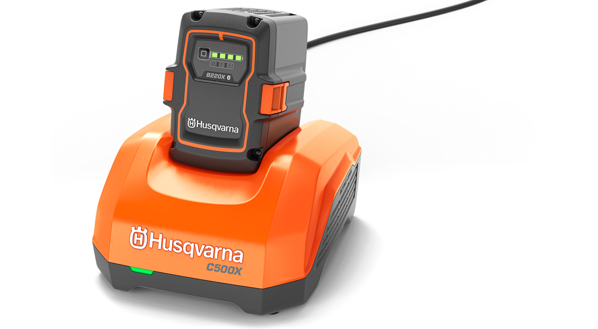 Husqvarnas laddare C500X är en effektiv laddare som är optimerad för snabb laddning av batterier i det flexibla 36 V-batterisystemet Husqvarna BLi-X. C500X har en laddningseffekt på 500 W och ActiveCool, ett aktivt luftkylningssystem med integrerade fläktar, som möjliggör snabb laddning utan behov av tidskrävande avkylningsperioder. Laddaren kan antingen placeras på ett skrivbord, en hylla eller enkelt monteras på väggen med en väggmonteringsplatta som finns som tillbehör.