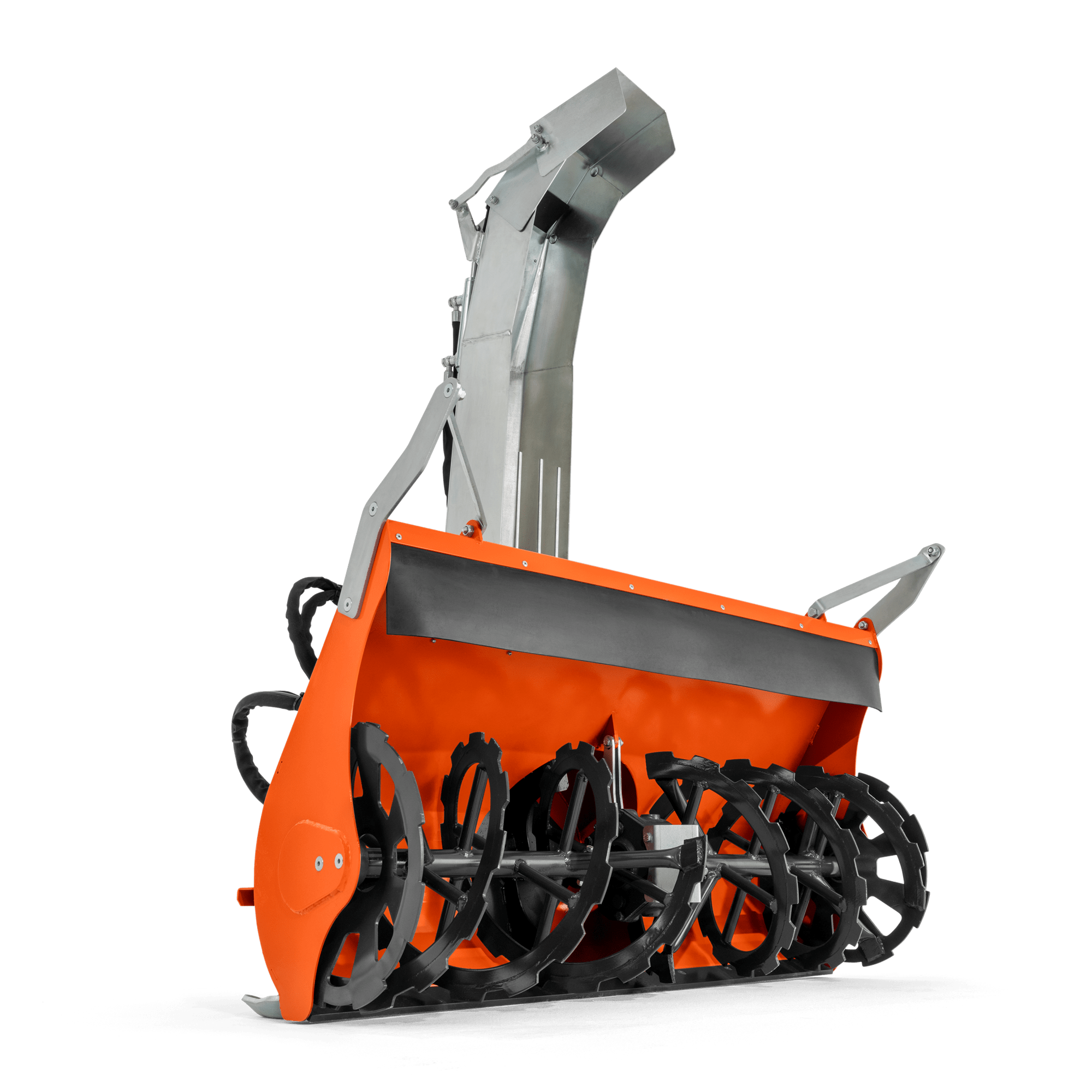 Högeffektiv och robust tvåstegssnöslunga med hydrauliskt kontrollerad kastvinkel. Kräver hydraulisk utrustning 529 95 80-01 och skall användas tillsammans med motvikt 529 95 79-01.